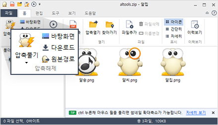 인터넷 검색을 하다 보면 간혹 대용량 파일을 다운로드해야 하는 경우가 생긴다. 이때 주로 사용하는 방식이 zip 또는 rar 형식이다. 둘 다 용량 대비 효율성이 뛰어나기 때문이다. 다만 단점이 있다면 해당 확장자를 지원하지 않는 소프트웨어에선 아예 열리지 않는다는 것이다. 이럴 땐 어쩔 수 없이 다른 포맷으로 변환해야만 하는데 여간 번거로운 일이 아니다. 물론 무료 툴바(toolbar)나 웹사이트를 통해 해결할 수도 있지만 아무래도 번거롭고 속도가 느리다. 따라서 별도의 프로그램을 활용하는 편이 낫다. 오늘 소개할 ALZIP Portable 역시 그러한 목적으로 개발된 유틸리티다.